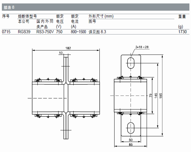 由純銀片制成的變截面熔體封裝于由高強度瓷制成的熔管內(nèi);熔管中充滿經(jīng)化學(xué)處理過的高純度石英砂作為滅弧介質(zhì);熔體二端采用點焊與觸頭牢固電連接。熔斷體型式有方管刀形觸頭和方管平板形觸頭兩種。熔斷體可帶指示器或撞擊器,當(dāng)熔體熔 斷時,指示器/ 撞擊器立即動作,顯示熔斷體已熔斷( 指示器)并推動微動開關(guān)( 撞擊器),發(fā)出各種信號或自動切換電路。 本系列熔斷體適用于交流50Hz、額定電壓至2000V、額定電流至2500A,主要用在電氣線路中作為半導(dǎo)體設(shè)備的短路保護 (aR)。 本系列熔斷體額定分斷能力至100kA。 本系列熔斷體符合國家標(biāo)準(zhǔn)GB13539.1、GB/T13539.4 和國際電工委標(biāo)準(zhǔn)IEC60269-1、IEC60269-4。