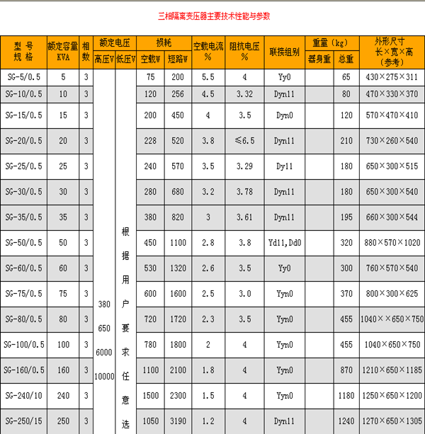 一、概述: 本產(chǎn)品是我廠針對工礦企業(yè)配套而設計,適合于電源隔離輸配電等場合。二、產(chǎn)品用途: 適用于定額頻率為50-60HZ的輸配電之用。三、結(jié)構(gòu)特征: 本型產(chǎn)品線圈為圓筒式,鐵芯采用迭積式心式鐵芯,高、低壓線頭引至固定的接線極或接線導電排,絕緣等級分為B級、F級、H級。一般用罩殼屏蔽,以策安全。