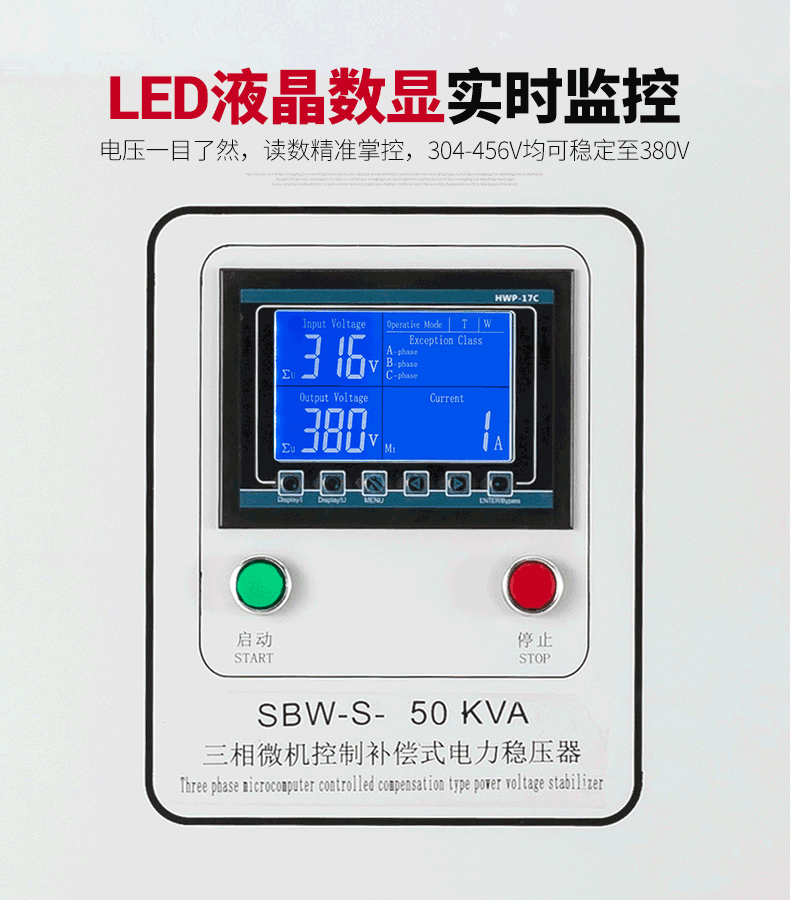 SBW系列三相全自動(dòng)大功率補(bǔ)償式電力穩(wěn)壓器,SBW、DBW三相、單相系列補(bǔ)償式交流穩(wěn)壓器,是我公司引進(jìn)、吸收西歐先進(jìn)技術(shù),同時(shí)結(jié)合我國(guó)國(guó)情,為穩(wěn)定交流電壓而設(shè)計(jì)的。當(dāng)外界供電網(wǎng)絡(luò)電壓波動(dòng)或負(fù)載變動(dòng)造成電壓波動(dòng)時(shí)能自動(dòng)保持輸出電壓的穩(wěn)定。 本系列產(chǎn)品與其它刑式穩(wěn)壓器相比具有容量大、效率高、無(wú)波形畸變、電壓調(diào)節(jié)平穩(wěn),適用負(fù)載廣泛,能承受順時(shí)超載,可長(zhǎng)期連續(xù)工作,市電穩(wěn)壓隨意切換,設(shè)有過(guò)壓、過(guò)流、相序、機(jī)械故障自動(dòng)保護(hù)裝置,以及體積小、重量輕使用安全方便,運(yùn)行可靠等特點(diǎn)?蓮V泛應(yīng)用于工業(yè)、農(nóng)業(yè)、交通、郵電、軍事、鐵路、科研文化等領(lǐng)域的大型機(jī)電設(shè)備、金屬加工設(shè)備、生產(chǎn)流水線、建筑工程設(shè)備、電梯、醫(yī)療器械、微機(jī)機(jī)房、電腦控制設(shè)備、刺繡輕紡設(shè)備、空調(diào)、廣播電視、賓館及家用電器照明等一切需要穩(wěn)壓的場(chǎng)所。本穩(wěn)壓器(穩(wěn)壓電源)設(shè)有過(guò)壓、過(guò)流、缺相、相序保護(hù)及機(jī)械故障自動(dòng)保護(hù),而且本穩(wěn)壓器(穩(wěn)壓電源)體積小、重量輕、使用安裝方便、運(yùn)行可靠等優(yōu)點(diǎn)。