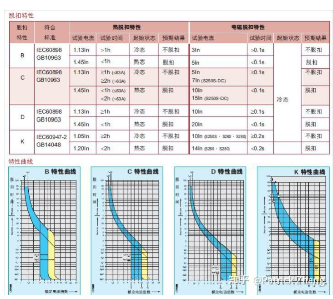 ![N]MZ~64TLC4CNGWO4X_]U(I.png](upload/2019121450647185.png) 圖2:MCB的脫扣特性和脫扣倍率 從表中我們看到,C型在熱態(tài)下的短路保護(hù)倍率為10~15倍,D型在熱態(tài)下的短路保護(hù)倍率為20倍。