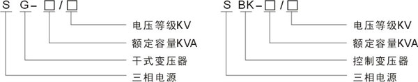 二、型號(hào)及其含義 三、外型及安裝尺寸 | 型號(hào) | 外形尺寸(開啟式) | 安裝孔距 | 外形尺寸(防護(hù)式) | | B × D × E | A × C | B × D × E | | SG/SBK-1KVA | 200×150×210 | 180×120 | 310×280×300 | | SG/SBK-1.5KVA | 240×150×230 | 180×120 | 350×300×360 | | SG/SBK-2KVA | 240×160×230 | 180×150 | 350×300×360 | | SG/SBK-3KVA | 250×180×230 | 180×170 | 350×300×360 | | SG/SBK-4KVA | 300×180×280 | 220×180 | 400×350×410 | | SG/SBK-5KVA | 300×200×280 | 220×200 | 400×350×410 | | SG/SBK-7KVA | 380×200×350 | 280×180 | 500×400×480 | | SG/SBK-8KVA | 380×220×350 | 280×190 | 500×400×480 | | SG/SBK-10KVA | 380×240×350 | 280×220 | 500×400×480 | | SG/SBK-15KVA | 420×220×400 | 280×220 | 600×500×580 | | SG/SBK-20KVA | 420×240×410 | 280×260 | 600×500×580 | | SG/SBK-30KVA | 480×260×460 | 320×260 | 600×500×580 | | SG/SBK-40KVA | 530×320×500 | 320×280 | 750×600×720 | | SG/SBK-50KVA | 530×350×520 | 450×260 | 750×600×720 | | SG/SBK-80KVA | 630×400×580 | 450×280 | 850×650×820 | | SG/SBK-100KVA | 720×500×650 | 550×350 | 950×700×850 | | SG/SBK-200KVA | 850×550×700 | 600×400 | 1100×800×1000 | | SG/SBK-300KVA | 1000×650×800 | 680×420 | 1200×800×1100 |